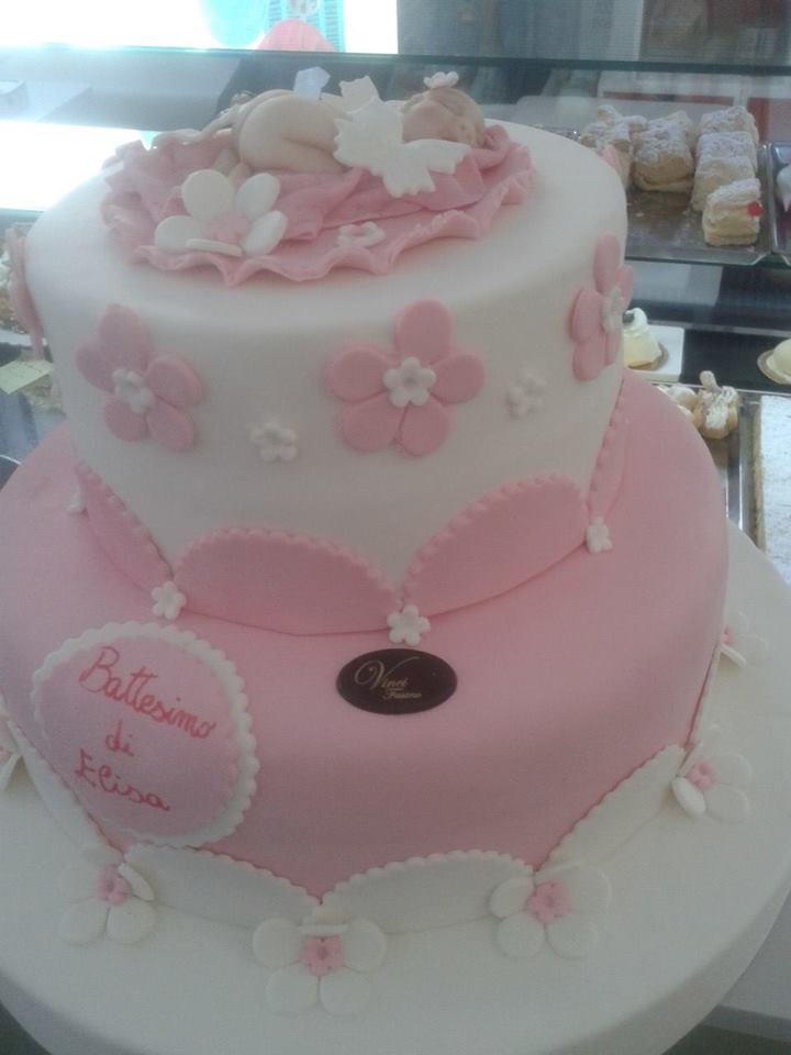 La pasticceria Vinci consiglia torte alte ma su un unico piano, per evitare l’effetto matrimonio. I colori del fondo saranno tenui: rosa per le bimbe, azzurro per i bimbi. Tuttavia, perché siano torte dal forte impatto scenico, saranno impreziosite con fiori, soggetti e forme in pasta di zucchero. Se si intende dare un aspetto legato al Sacramento del Battesimo per decorare la torta di Battesimo, si preferirà il colore bianco, con angioletti e drappeggi; se si vuole rimanere su uno stile più tenero, si sceglieranno orsetti, elefantini, scarpette da realizzare in pasta di zucchero a seconda delle preferenze.